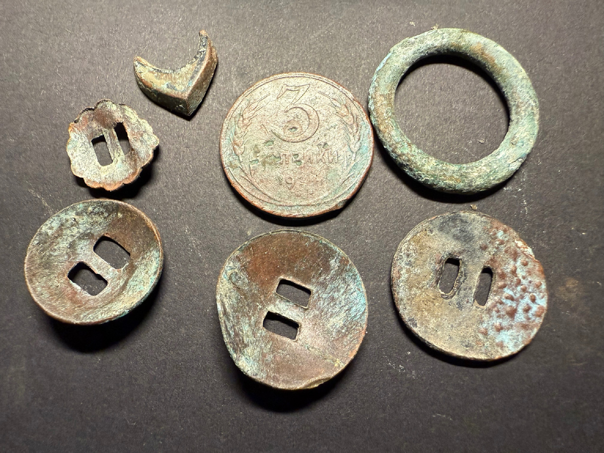 Когда медные находки слишком долго лежат в хозяйственном мыле, они могут покрыться белесо-зеленым налетом, который очень трудно удалить.
