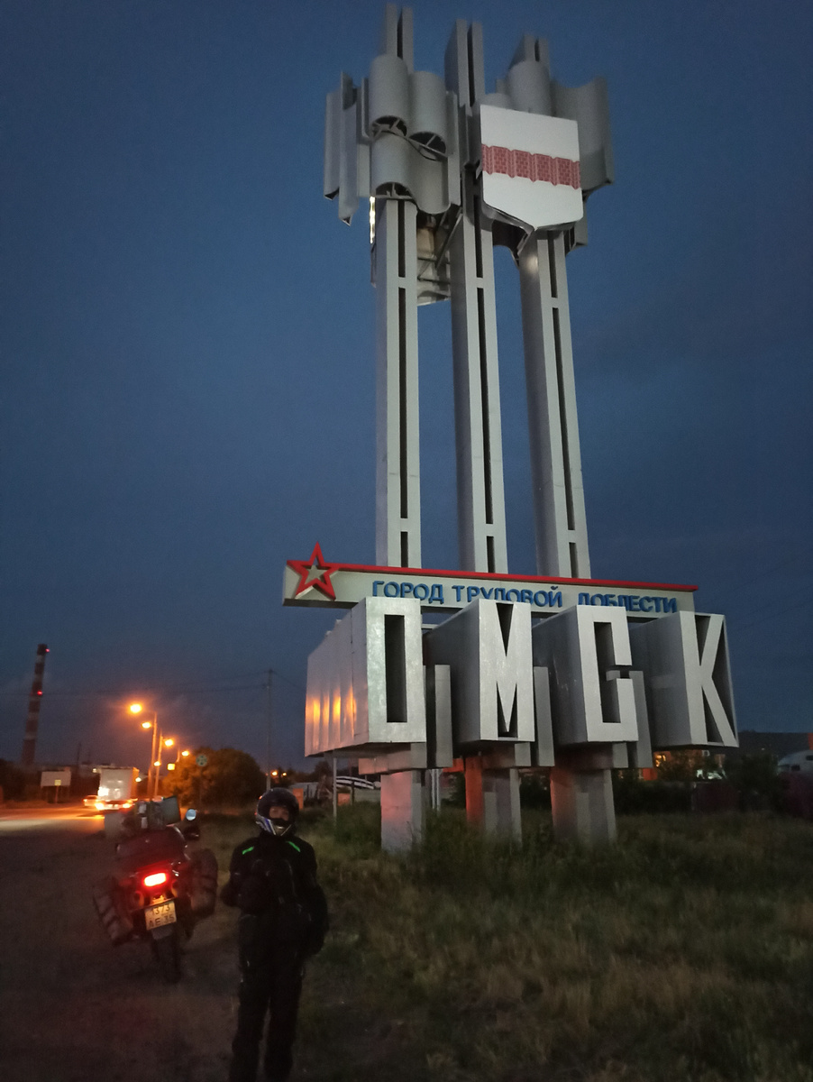 В 2024 году в Омске не было байк-поста, мест, где можно было бы поставить палатку, мы не знали, а для гостиниц, даже самых дешёвых, средств не было в обрез – мы их хранили для таких на колымской трассе. И у Ольги вылетело из головы (видимо, шлем всё-таки продувает!), что ей в Тюмени наш новый друг Владимир Полищук дал кучу номеров телефонов краеведов и историков, которым можно было позвонить не только ради знакомства с историей местности, но и за тем, чтоб хотя бы поинтересоваться о ночлеге. С одним из таких – Леонидом Рыженко, причём (!!!), мотоциклистом – едва не пересеклись: он обещал провести экскурсию по историческим местам города, если на обратном пути заглянем, но этого не случилось – возвращаясь, мы уже не стали заезжать в Омск.