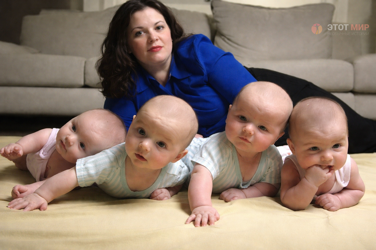 Мать позирует с четверняшками, фотограф замирает, заметив одну деталь