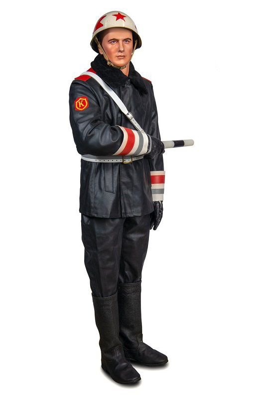 Младший инспектор Военной Автоинспекции ВС СССР в зимнем кожаном костюме