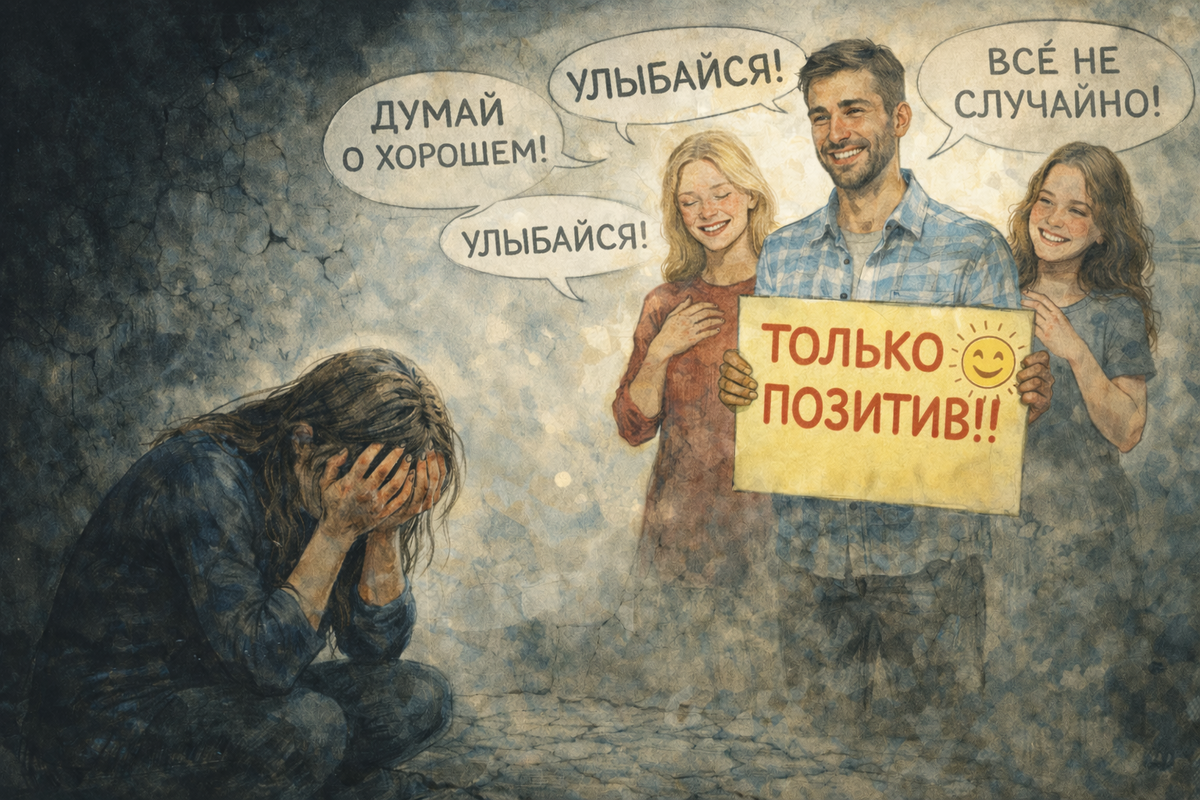 "Я знаю, надо думать о хорошем, благодарить за уроки, держать высокий уровень вибраций... просто почему-то жить совсем не хочется" - иногда мы это даже не можем произнести вслух. В этих словах слышно не отсутствие мотивации, а усталость нервной системы, которая слишком долго несёт на себе двойной груз - реальную боль и обязанность улыбаться поверх неё.