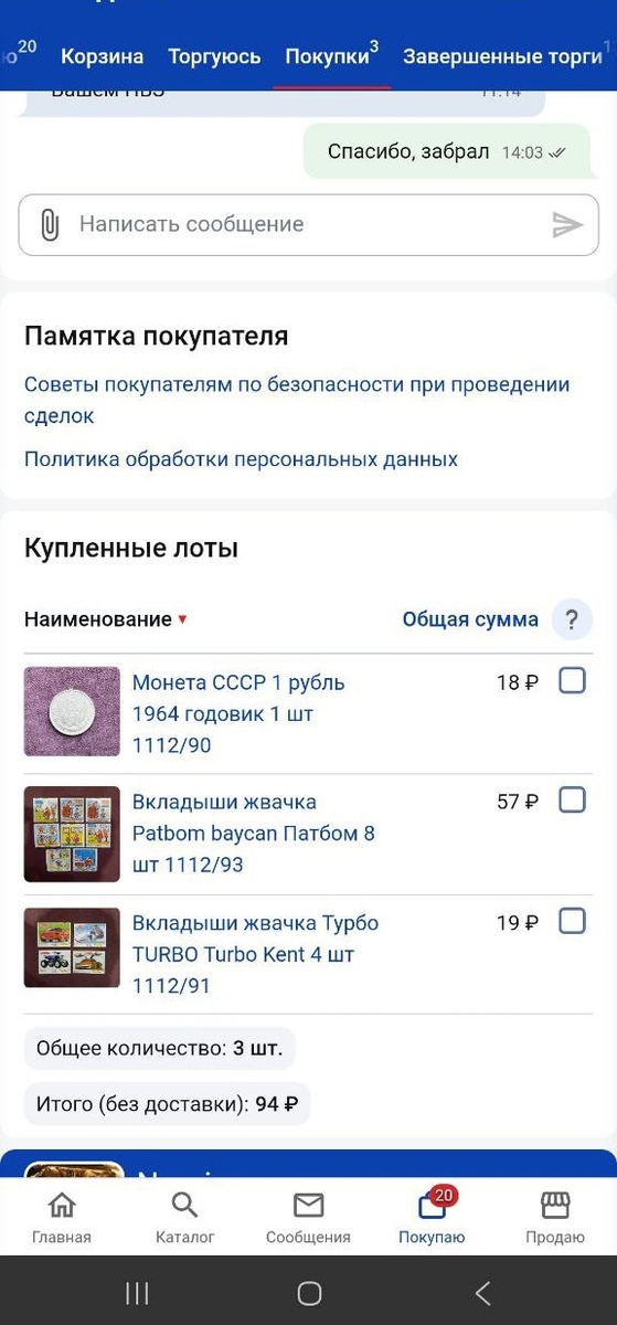 Здравствуйте, друзья. Продолжаю свой цикл заметок о покупках, продажах и личных наблюдениях. Сегодняшняя история — не про крупные сделки и не про громкие продажи, а про маленькую, но очень тёплую покупку, которая отлично вписывается в общую картину моего хобби и будущих Авито продаж. Иногда именно такие лоты напоминают, зачем вообще всё это начиналось. В этот раз я взял три небольших лота, которые обошлись мне всего в 94 рубля. Да, цена смешная, но эмоции — вполне настоящие. Сразу скажу: эти лоты шли как дополнительная покупка. Я торговался у этого же продавца за более серьёзные позиции, но из-за разницы с Москвой в 2 часа торги закрывались глубокой ночью. Ставки на основные лоты почти все перебили.
