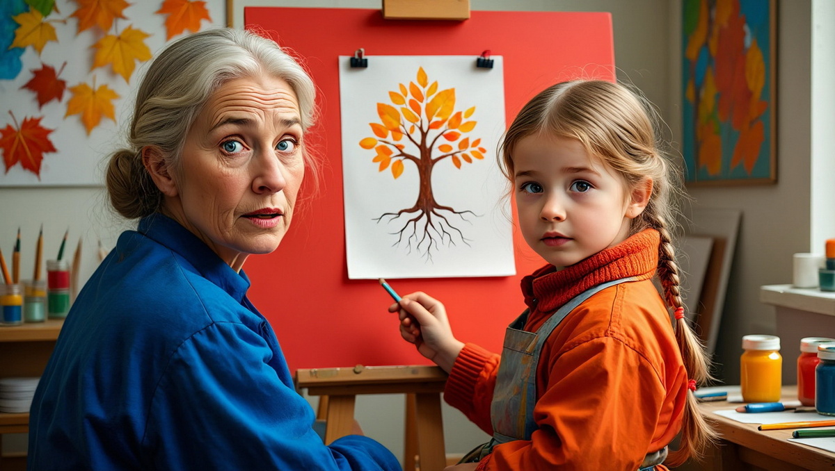 Она протёрла стол. Открыла окно — впустить свежий воздух. Достала из сумки рисунок Маши — тот самый, с дерева корнями вверх. Поставила его на мольберт, рядом с незаконченной картиной Мити.