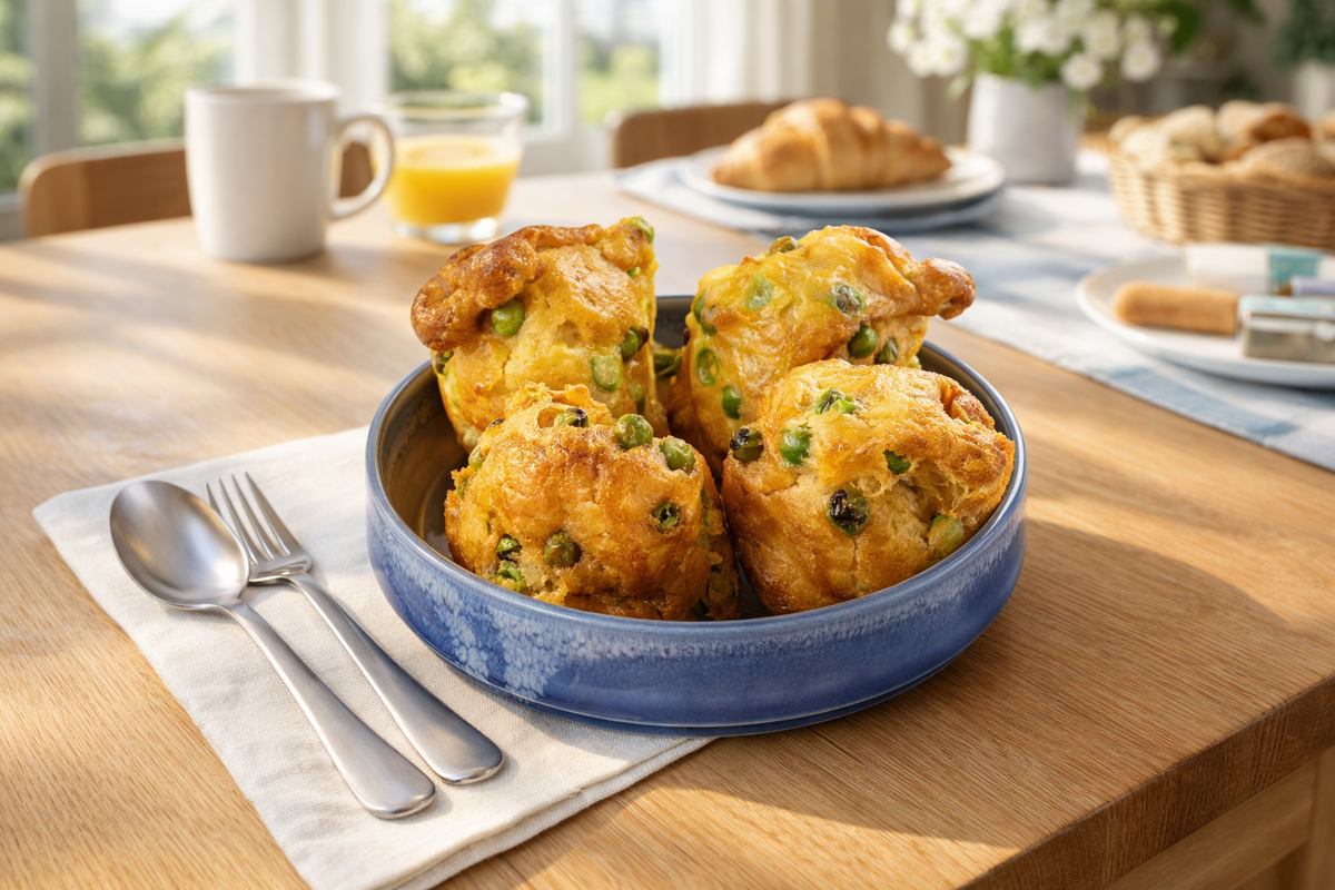 🍽 6 порций 🕘 30 минут Начинка в йоркширском пудинге может быть любой: и соленой, и сладкой. Туда можно добавить овощи, грибы, остатки мяса или птицы, замороженные ягоды или фрукты — в целом все, что вы можете представить в качестве начинки для блинов. Также можно приготовить эти пудинги без начинки и макать их в подливку от мясного рагу или в варенье. 🟢Ветчина: 120 г 🟢Сыр: 120 г 🟢Замороженный зеленый горошек : 80 г 🟢Куриное яйцо: 2 штуки 🟢Молоко: 120 мл 🟢Пшеничная мука: 100 г 🟢Соль: по вкусу 🟢Молотый черный перец: по вкусу 🟢Растительное масло: по вкусу 1️⃣ Разогреть духовку до 190 градусов. Влить в формочки для маффинов по чайной ложке растительного масла и смазать стенки. Отправить в духовку, пока подготавливаются остальные ингредиенты. 2️⃣ В миске смешать яйца, молоко и просеянную муку. Посолить и поперчить по вкусу. Отставить в сторону. Сыр нарезать небольшим кубиком. 3️⃣ Таким же кубиком нарезать ветчину. Вытащить разогретую форму для маффинов из духовки. Выложит