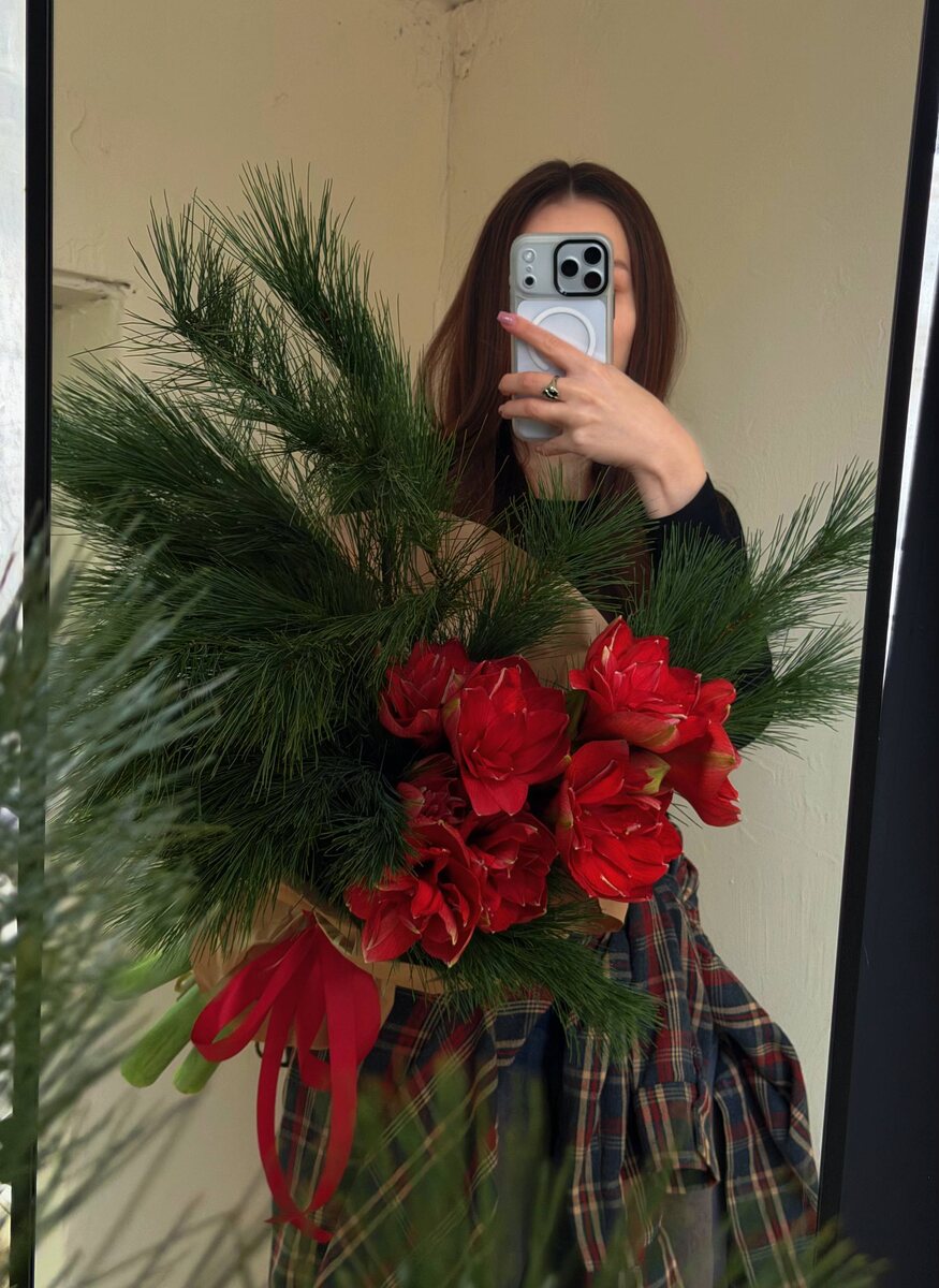 И букеты с еловыми веточками 💔 в сочетании с амариллисами — просто 🔥