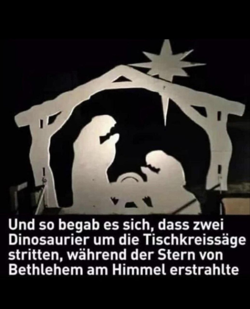 ! 😵💫 ▫ Es begab sich, dass ... – Случилось, что ... (оборот, в основном встречающийся в старых текстах, в частности библейских) ▫ sich streiten (stritt, gestritten) um + Akk – ссориться, спорить из-за чего-то ▫ die Säge – пила; die Kreissäge – циркулярная пила; die Tischkreissäge – настольная циркулярная пила (о, магия немецких композитов!) И так случилось, что два динозавра поссорились из-за настольной циркулярной пилы, когда на небе засияла Вифлеемская звезда. 🔡 Учиться с нами