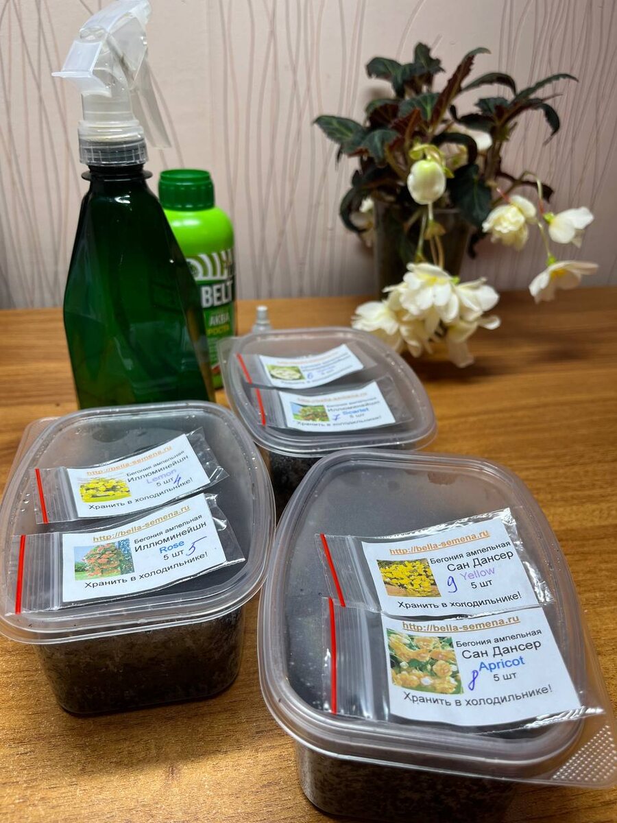 Как подружиться с семенной бегонией? Попытка вторая. Цветущие семенные бегонии невероятно разнообразны и декоративны, но их выращивание требует определенных знаний и навыков. Петуния на фоне бегонии по сложности выращивания просто сорняк! Признаюсь, я пока не нашла к ней тот подход, который бы устраивал меня на 100%. Вот проблемы, которые возникают при выращивании бегоний из семян: 1⃣Средняя всхожесть семян разных производителей колеблется от 30 до 80% 2⃣Семена всходят длительно (от 7-ми до 20-ти суток, в среднем 10-12) 3⃣Крайне медленное развитие сеянцев на начальном этапе роста (от всходов до пикировки в отдельные емкости может пройти 2 месяца) 5⃣Сеянцы чувствительны к составу грунта, перепадам влажности и температуры 5⃣Растения подвержены корневым гнилям ‼️Самая большая моя проблема - при длительном содержании в парничке под лампами бурно развиваются зеленые водоросли, мешая прорастанию семян и вызывая гибель проростков. 📍Но есть и хорошая новость – если сеянцы бегонии «взялись за