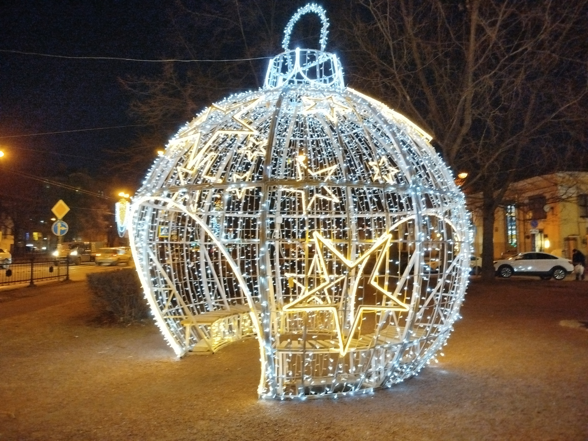 А в конце 2025 года установили другую инсталляцию- Парад планет и нарядную ёлку, которая переливается разноцветными огнями.