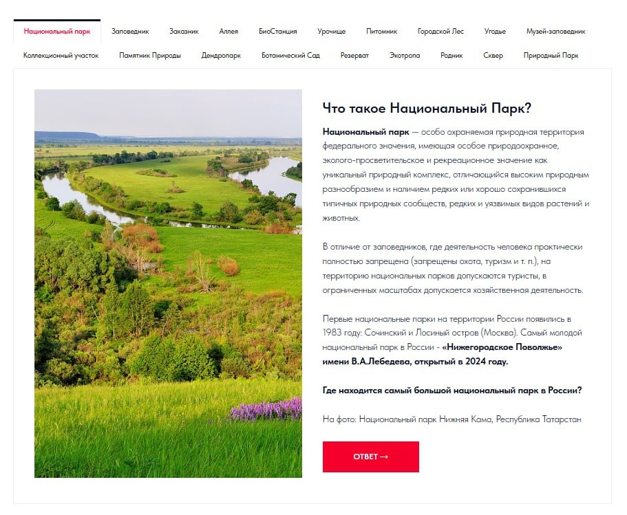🌅 #ЦентрыИсторииНауки - мы подготовили для занятий в Центрах Викторину Особо Охраняемые Природные Территории России 🌲Разбираемся в терминологии и знакомимся с удивительными местами нашей страны🌏 🌾Наша страна богата территориями, которые имеют особое природоохранное, научное, культурное, эстетическое, рекреационное и оздоровительное значение!🌷 ❤️Добро пожаловать в викторину по Заповедным Местам России! 🌠Подать заявку на получение методических материалов к научным праздникам в 2026 году и далее бессрочно можно на странице Центров Истории Науки: scientifictravels.ru/centers Подробнее