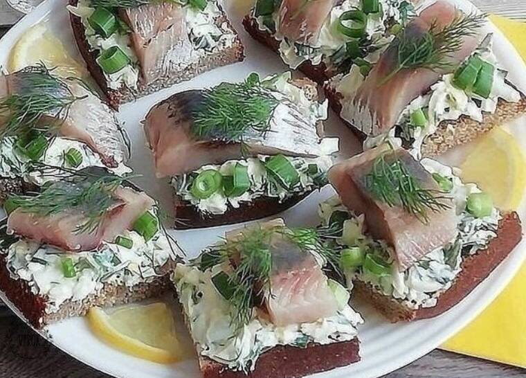 Нам понадобится: черный хлеб(бородинский или ржаной), сельдь (1 филе), яйца- 3 шт, зеленый лук - 100гр,укроп, майонез-3 ст.л, масло растительное-1ст.л ( для обжарки). Нарежьте хлеб. Обжарьте на сковороде или смажьте маслом по желанию. Яйца отварить, остудить и натереть на терке. Смешать с луком, чесноком и майонезом по желанию. На каждый ломтик хлеба выложить смесь и селедочку. Украсить зеленью. Вкусного Нового года!🌲🎄🎊