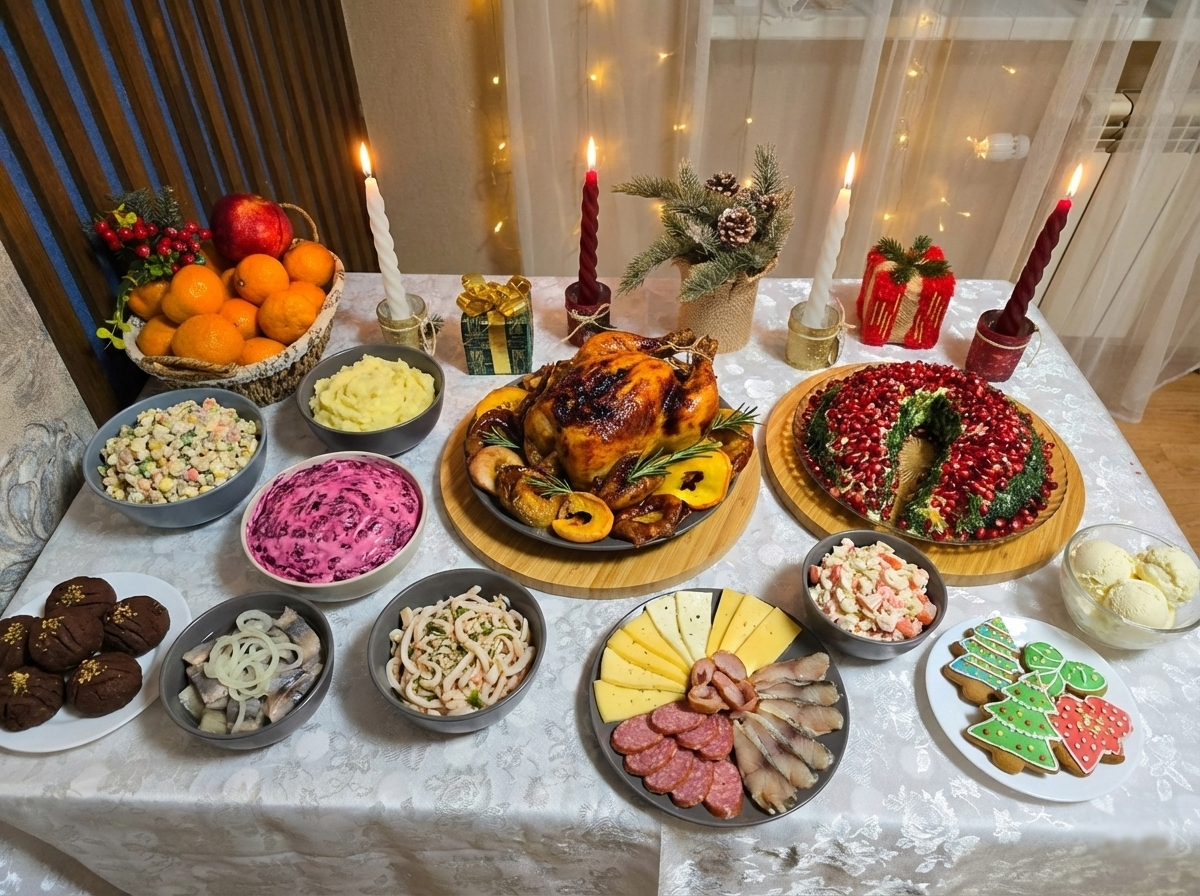 Каждый год мы ищем что-то эдакое, а в итоге рука всё равно тянется к любимой классике. В этот раз я решила: никаких экспериментов над гостями! 2026-й — год Огненной Лошади. Лошадка животное основательное, любит сытную, простую и понятную еду. Поэтому мой стол будет щедрым, традиционным и невероятно вкусным. Делюсь с вами полным списком блюд. Сохраняйте, чтобы не потерять список покупок! 😉 В центр стола я поставлю её — Золотую курочку с красными яблоками.