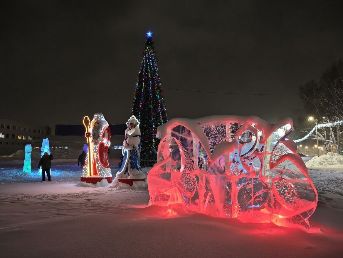 Максим Шкарабейников поделился кадрами ледовых фигур на площади СК Снежинка.