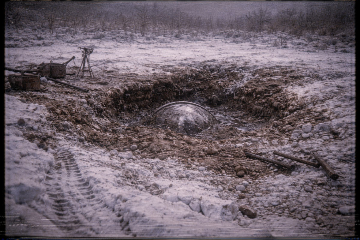 Сначала подумали, что это просто плотный слой породы. Такое в Якутии бывает. Но бур пошёл странно — не крошил, а будто скользил. Когда расширили точку вручную, открылась гладкая поверхность серо-тёмного цвета. Она не крошилась, не трескалась, не имела привычной структуры минералов. Молоток оставлял только слабые следы, словно бил по сильно упрочнённому металлу. Уже тогда кто-то сказал, что материал «не мерзлотный», но эту фразу в полевых записях потом вычеркнули.