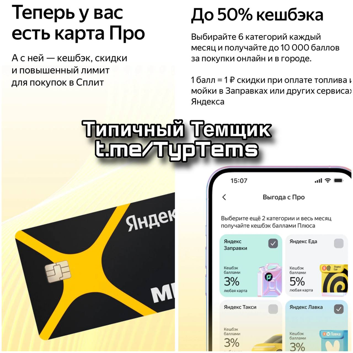 Вообще Яндекс Про позиционируется, как карта для работников яндекс, курьеров, таксистов и других ребят. Сегодня Вы узнаете как выпустить ее для себя, при этом не бегая по городу как Vagos с желтым рюкзачком. Если раньше карта использовалась только для выплат, то сейчас Яндекс изменил подход к своей карте для работников, добавив туда очень много плюшек, акций и кэшбэка. Например в этом месяце у админа категории: 1) 4% на все 2) 6% Кафе и рестораны 3) 8% Аптеки 4) 5% Товары для дома 5) 5% Супермаркеты 6) 5% Автоуслуги. Целых 6 категорий... Категории как и везде можно выбирать под себя. Так же сейчас выдают 3000 баллов за две покупки по карте... Подробнее смотри в t.me/SkidochSklad Рефералки на карту нет, поэтому за выпуск карты админ с Вас ничего не поимеет. 1. Для начала надо получить самозанатость, если звучит страшно, то посмотри в интернете, что это. Никакого риска, налоги только с выручки, ничего платить не надо. Проще всего это сделать через «Мой налог» за 2 минуты. 🟣Пропускаем пу