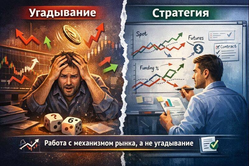 Большинство трейдеров: • гадают направление • ловят «иксы» • зависят от эмоций Но если ты понимаешь: ✔️ разницу между спотом и фьючерсом ✔️ как формируется цена ✔️ зачем существует ставка фондирования ✔️ какие правила заложены в контракте 👉 ты можешь строить стратегии не на прогнозе, а на структуре рынка. 📌 Стратегии, где: ✅ не нужно угадывать рост или падение ✅ используется расхождение цен ✅ учитываются выплаты по фондированию Именно такие подходы дают: ➕ более стабильный результат ➕ понятный риск ➕ контроль над процессом Это уже не «трейдинг на эмоциях», а работа с механизмом рынка. Стратегия довольно простая: 1️⃣ Находим инструмент с положительной ставкой 2️⃣ Покупаем на споте 3️⃣ Продаем бессрочный фьючерс 4️⃣ Ждем начисления ставки 5️⃣ Закрываем позиции Подробно про эту и другие стратегии арбитража рассказываю в обучение «Арбитраж PRO» и в закрытом клубе «Платина» Записаться 👉 vkfinance.ru