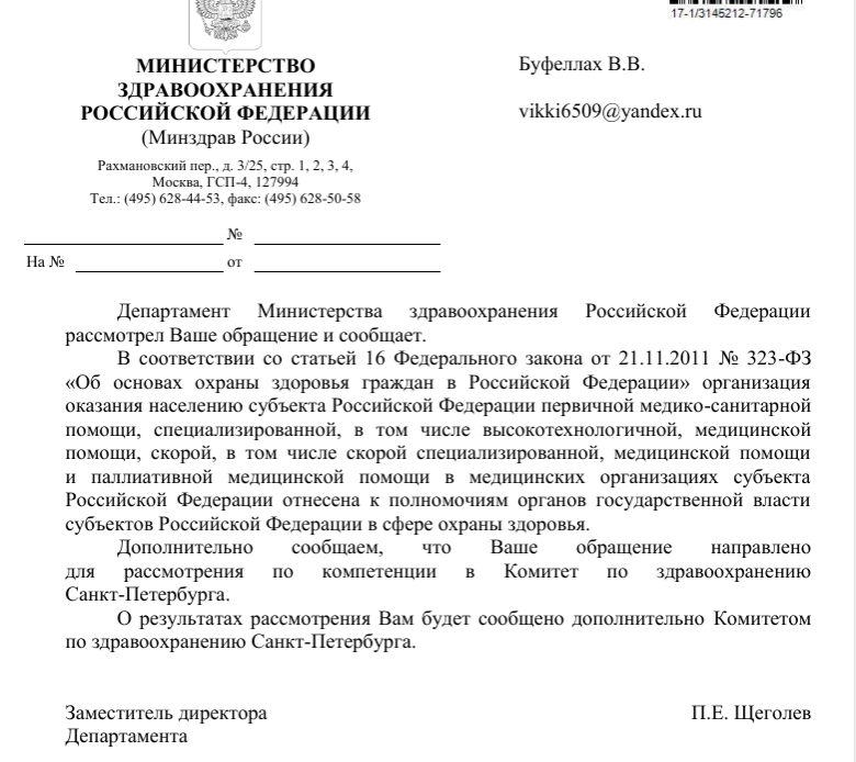 Здравствуйте мои дорогие читатели! Получила я ответ от Минздрава и поняла что не видать нам ни инвалидности, ни пенсии по инвалидности, ни помощи по ИПРА. Мою жалобу просто куда то перенаправили и думаю теперь так и будут бесконечно писать отписки и перенаправлять. Никто ничего решать не хочет. Вот тут я так поняла направили в комитет по здравоохранению. А в следующем письме уже Комитет направил куда то по компетенции...знать бы куда. Когда и кто мне теперь ответит неизвестно и ответят ли вообще, или жалоба просто где то затеряется. У нас дела все хуже и хуже...Муж уже не может сидеть, сразу заваливается на спину или на бок. Отказала полностью левая рука и нога. Кормлю с ложки, водой тоже выпаиваю с ложки, так как уже нарушена функция глотания. Практически ни на что не реагирует и мало что понимает, хорошо хоть меня узнает, сегодня завтраком его кормила , а он вдруг берет мою руку и тянет к губам, целует. Я аж расплакалась. Дорогие мои, любимые читатели, еще раз хочу поблагодарить ва