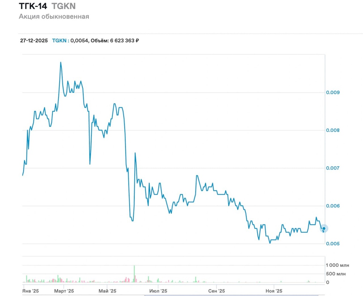 Акции ТГК-14 обвалились почти на 20% в 2025 году