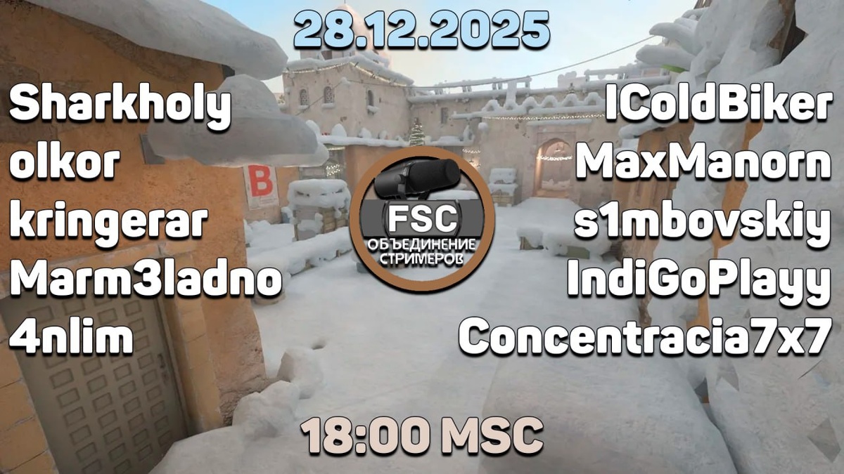 📢🤩🤩🤩🤩🤩💁♀️ 📆 СЕГОДНЯ ⏰ 18:00 по МСК 🎮 Counter-Strike 2 💣 💜 КООП [FSC] 💜 🏒 Стримеры будут играть в снежки 🏒 Команда "А" 🔥 MaxManorn 🔥 IndiGOPlayy 🔥 IColdBiker 🔥 s1mbovskiy 🔥 Concentracia7x7 Команда "Б" 🔥 olkor 🔥 Marm3ladno 🔥 4nlim 🔥 kringerar 🔥 Sharkholy 1️⃣ Приходите смотреть на каналы участников!!! После КООПА поиграем со зрителями!