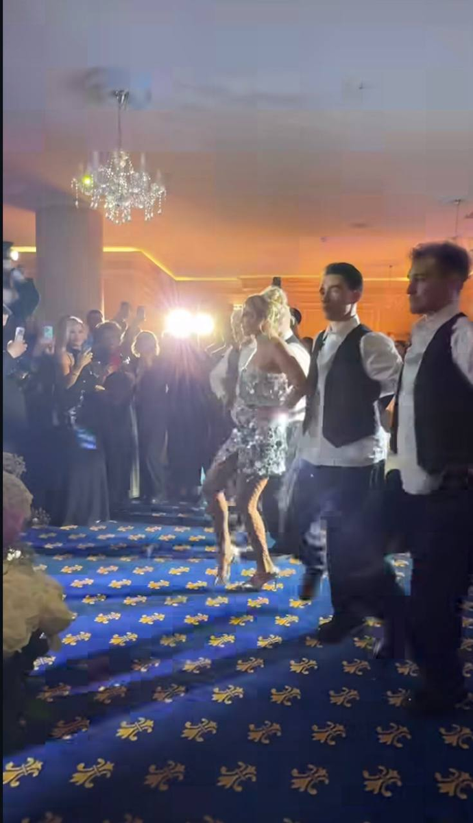 После музыкального номера вечер логично перешёл в следующую главу. Виктория появилась уже в лимонном платье Versace, и это был тот самый момент, когда образ идеально совпал с настроением. Ярко, празднично, с настроением «сейчас будет весело».