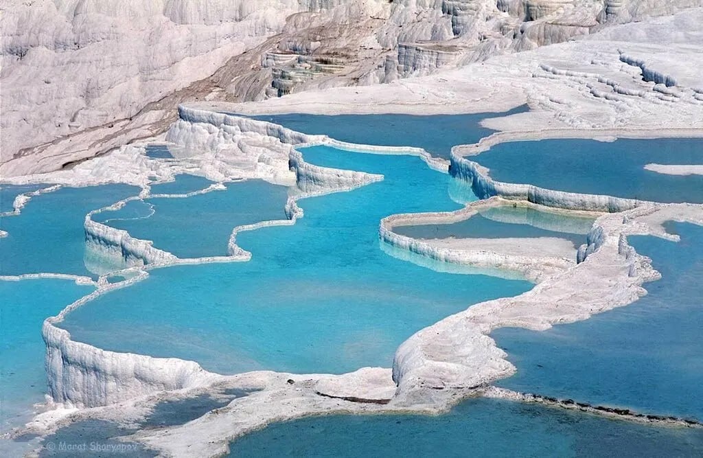 Сюда приезжают люди, страдающие от болезней сердечно-сосудистой и дыхательной систем, атеросклероза, рахита, а также желающие омолодить организм. По словам гидов, природные лечебные ванны были причиной, по которой сама Клеопатра наведывалась в эти земли. Подъезжая к провинции Денизли, где расположен курорт, издалека можно увидеть уникальное природное явление – травертиновые террасы (кальцитовые отложения). Благодаря их белоснежности и ослепляющему блеску, местность называют турецкой жемчужиной. Памуккале имеет огромную историческую ценность: на его территории сохранились руины города Иераполиса, основанного во втором столетии до н.э. Приезжающим доступны для осмотра уцелевшие части древних бань, храмов и амфитеатра. Ближайшим к курорту поселком является Мармарис; дорога от него до термальных источников займет менее 3-х часов. Проще говоря. Турция