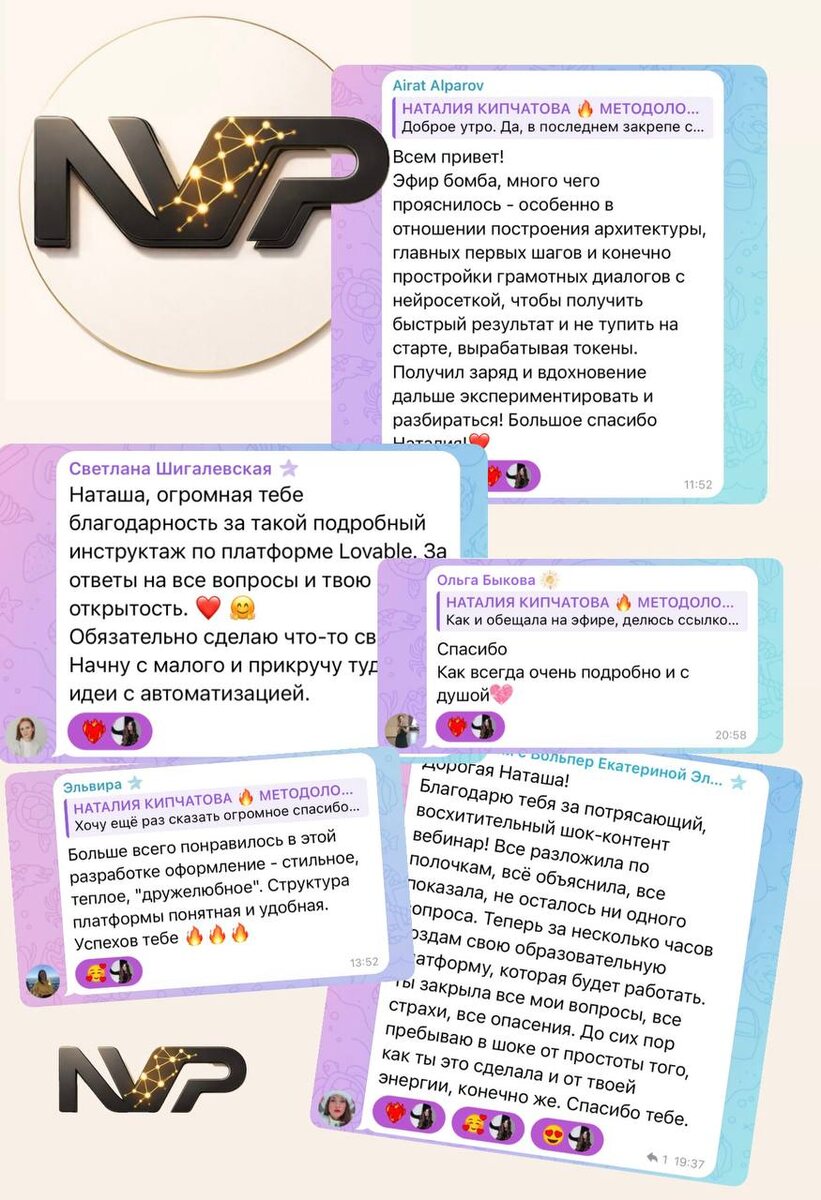 Очень много отзывов получила после тестирования платформы и после проведенного эфира, не помещаются на скрине 😍 Но я так рада, что смогла донести до участников то, что это всё намного проще, чем кажется. Знаете что я ещё поняла, я за разработку своего одностраничного сайта в 2021 году отдавала дизайнеру 25.000₽. А свою платформу с огромным функционалом, которую тестировали больше 30 человек, я создала сама без дизайнерских навыков и без навыков программирования всего за 7.600₽ 🤩. И эта платформа моя личная.