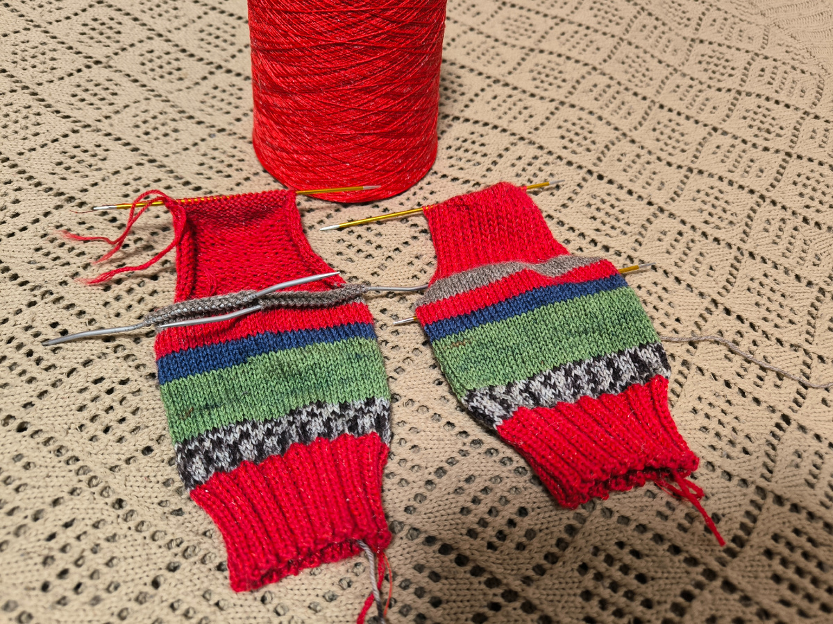 Создаю праздничное настроение , вяжу новогодние носочки для дочки
