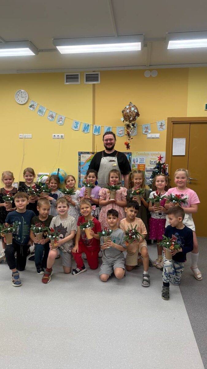 ? На этой неделе мы устроили праздник в детском саду! Провели мастер-класс, где малыши своими руками создавали волшебные зимние композиции 🤩 Было много сосредоточенных взглядов и радостных улыбок. Каждый унес домой кусочек новогоднего леса, сделанный своими руками. ✨Как вам эти чудесные кадры и детские букеты?