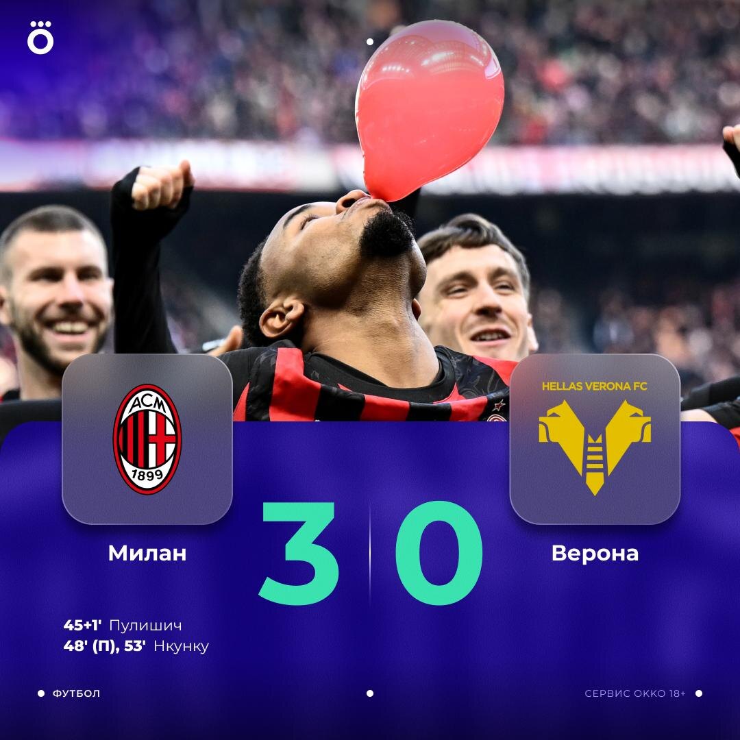 «Милан» разгромил «Верону» и вышел на первое место в Серии А ⚽️