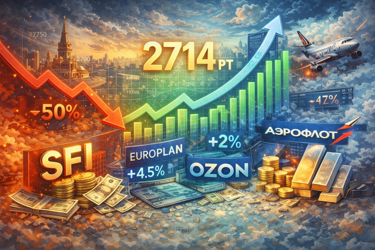 📊 Российский рынок удержался выше 2 700 пунктов. Индекс ММВБ закрылся около 2 714, что для текущего фона уже сигнал устойчивости. 💥 Главное событие дня — дивидендный гэп SFI. Бумага потеряла почти 50% капитализации 📉. Это редкий случай, когда спецдивиденд полностью «съел» цену. 🚀 В росте — Европлан +4,5%, Ozon прибавил около 2%, ЮГК вырос почти на 3% 🔼. Рынок ждёт ясности по будущему собственнику национализированной доли. 📉 В аутсайдерах — Аэрофлот из-за слабых прогнозов пассажиропотока ✈️, девелоперы и Сургут-преф. Последний падает на фоне укрепления рубля. ⚖️ Вывод простой: рынок живёт новостями, а дивиденды и ликвидность сейчас важнее красивых историй.