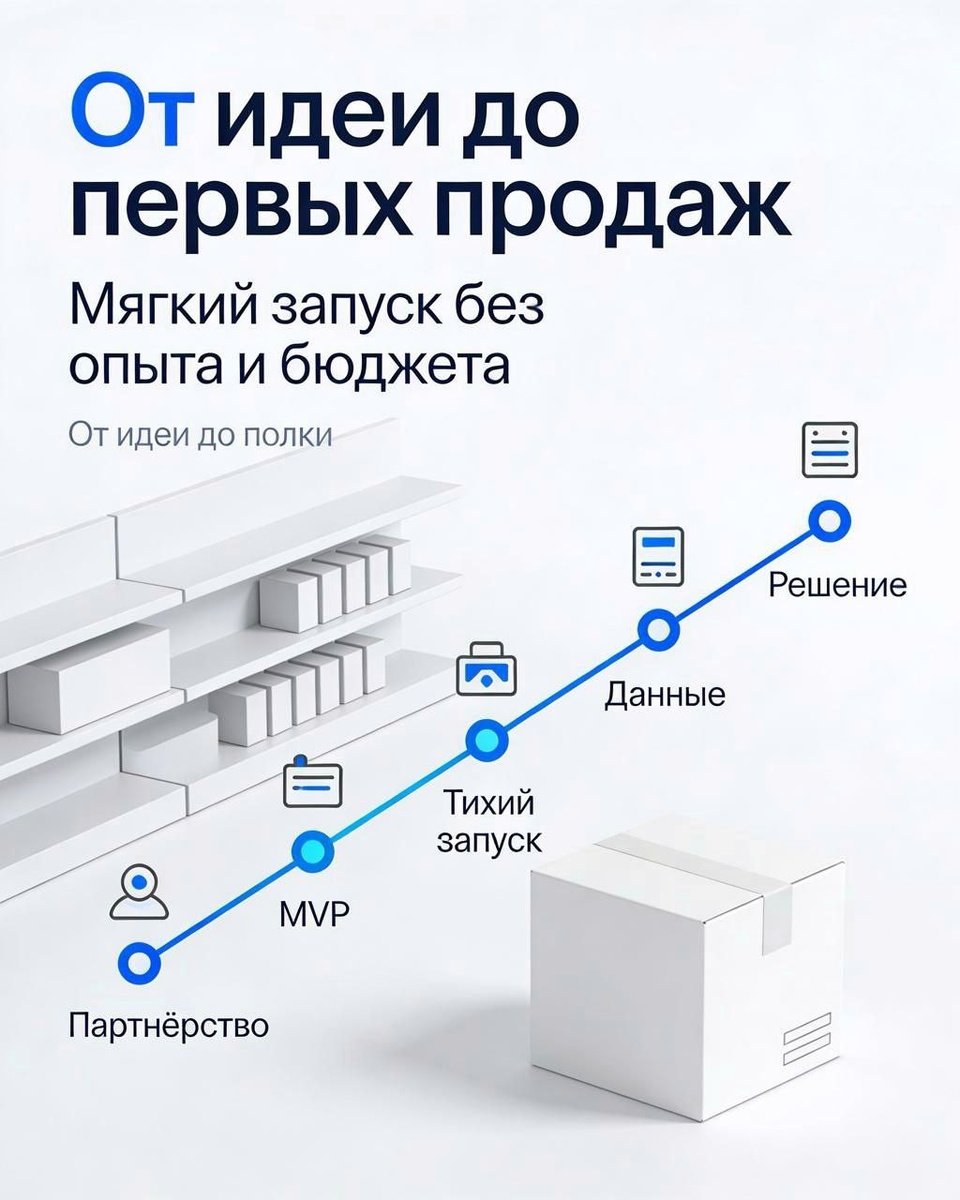 Добрый день! Сегодня хочу ответить на частый вопрос от начинающих предпринимателей: «Очень хочется свой продукт, но нет ни большой экспертизы, ни понимания рынка. Ждать или рискнуть?» Классическая дилемма: бросить все силы и деньги на «идеальную» версию — или отложить мечту на годы. Есть третий путь, который снимает эти риски. Его суть — не«запуск», а управляемый эксперимент. ➡️ Вот пошаговый план«мягкого запуска», который срабатывает снова и снова. Этап 0: Партнёрство вместо одиночества Найти единомышленника — это не просто поддержка. Это система сдержек и противовесов. Важно сразу договориться о «правилах игры»: бюджет на эксперимент, зоны ответственности и, главное, — критерии успеха первой фазы. Например: «Мы считаем гипотезу подтверждённой, если продадим50 штук и соберём 15 отзывов». Это превращает эмоции в измеримые цели. Этап 1: MVP — не стыдно, а стратегически Забудьте про «красивый и дорогой продукт». Ваша первая задача— создать Minimum Viable Product (MVP). То есть самый прос