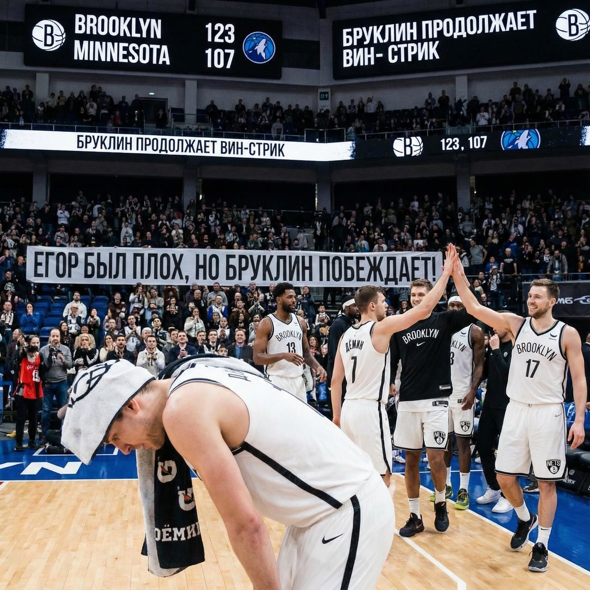 Егор был плох, но Бруклин продолжает вин-стрик После двух отличных поединков Дёмин в Миннесоте выступил куда хуже - лишь семь очков. Но его Нетс все равно одержали победу 123:107 - уже третью подряд.