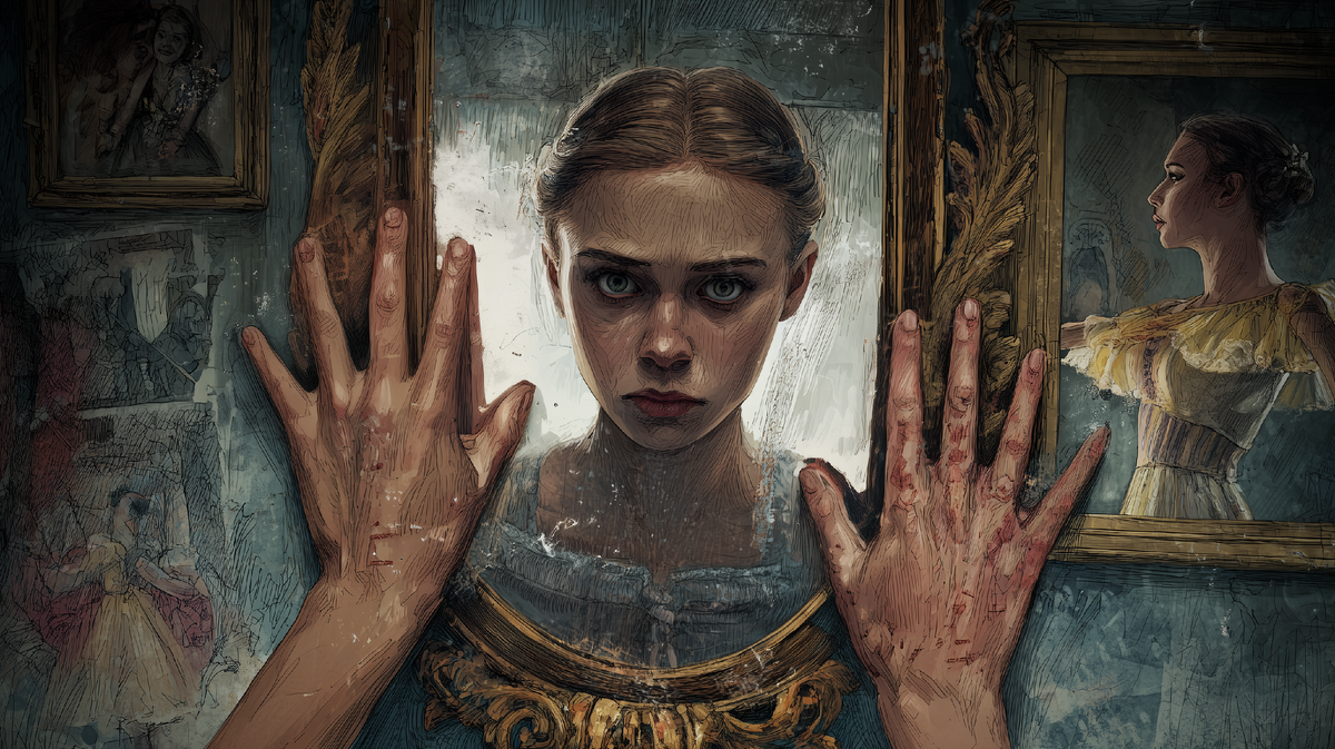 Я стояла, не в силах отвести взгляд. Отражение кружилось в фуэте — раз, два, десять, двадцать оборотов, и ни единого схода с точки. Прыгало в grand jeté так высоко, что казалось — вот-вот коснётся потолка. А глаза... глаза смотрели прямо на меня, не отрываясь, даже когда голова кружилась в поворотах. В них была насмешка. И жалость. И ещё что-то, от чего по спине пробежали мурашки.