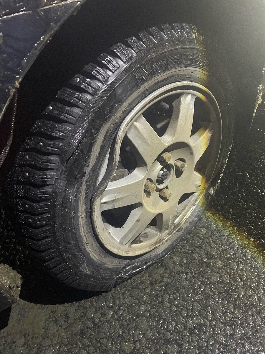 Народ , будьте аккуратны после илевников в нашу сторону , там яма очень хорошая посередине не попадите в нее , сегодня попало уже более 8 машин может и больше и вот результат