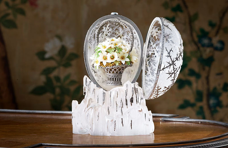 Этот хрупкий шедевр, преподнесённый Николаем II своей матери, вдовствующей императрице Марии Фёдоровне, эксперты единодушно называют вершиной ювелирного искусства XX столетия.