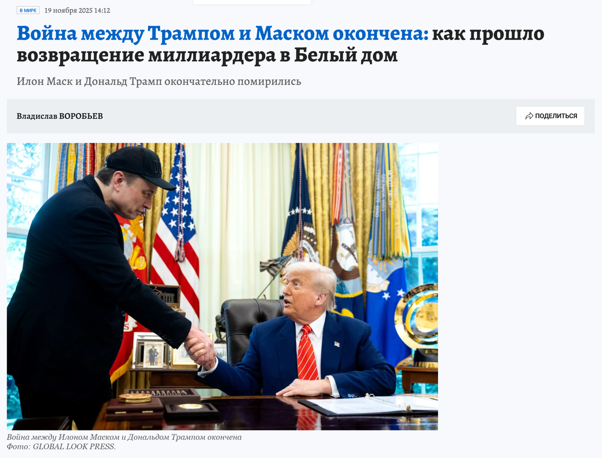 В 2025 году очень много писали о конфликте между Дональдом Трампом и Илоном Маском. Говорили, что разрыв окончательный, и примирения быть не может. Еще 11 апреля мы публиковали наш прогноз об этом - https://natalyaluckpractica.ru/razryv_mezhdu_trampom_i_maskom_neizbezhen Прогноз вышел еще до того, как конфликт между ними достиг своего пика в июне 2025 года. Мы писали, что несмотря ни на что Трамп и Маск все равно останутся в одной связке. Теплых дружеских отношений между Трампом и Маском нет. Есть бизнес. И есть понимание, что ради достижения своих целей им нужно быть вместе. Поэтому разрыва не случится. И события последних месяцев показывают, что Маск вхож в Белый дом. Присутствует на важнейших мероприятиях. Наш прогноз был совершенно верным. Источник: https://natalyaluckpractica.ru/