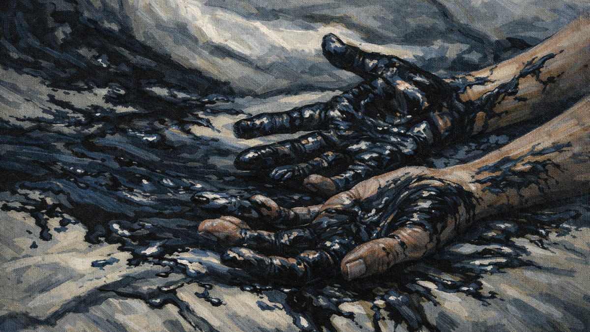 Он проснулся от удушливого запаха — что-то между гнилью и горелой резиной. Открыл глаза и увидел, что его руки покрыты чёрной маслянистой жидкостью. Одеяло, подушка, простыня — всё было испачкано этой дрянью.