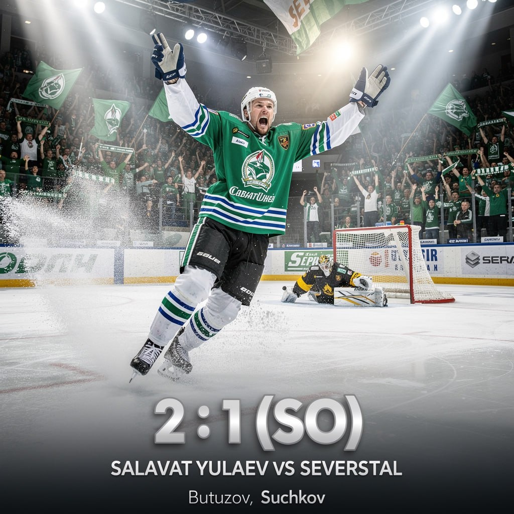 🏒 «Салават Юлаев» во второй раз за месяц дожал «Северсталь», вырвав победу в серии буллитов