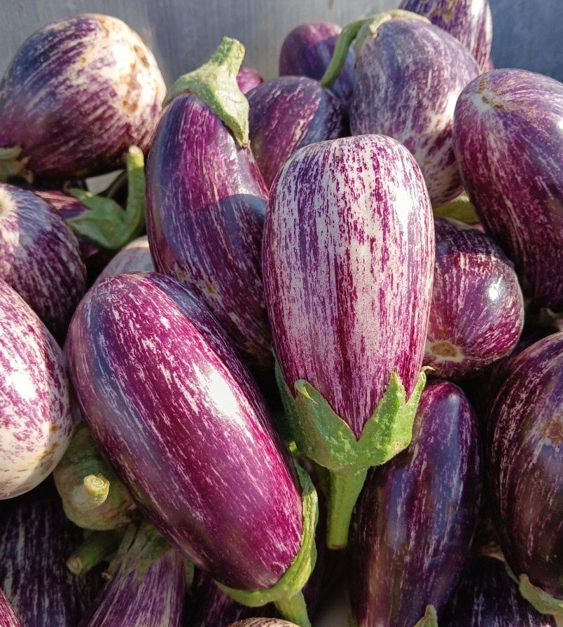 Между кукурузой и дынями есть пара рядочков с баклажанами и в начале работы проходимся по рядам. Это баклажаны почти без горечи и с мягкой шкуркой. А самые вкусные именно белые, а я и не знала. Их совершенно не надо вымачивать. И как оказалось не только я - многие этого не знают.