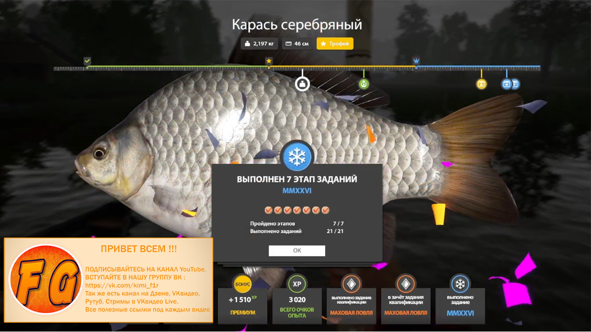 Выловил трофа с первого заброса. Выполнял задание "выловить двух трофеев на водоеме".