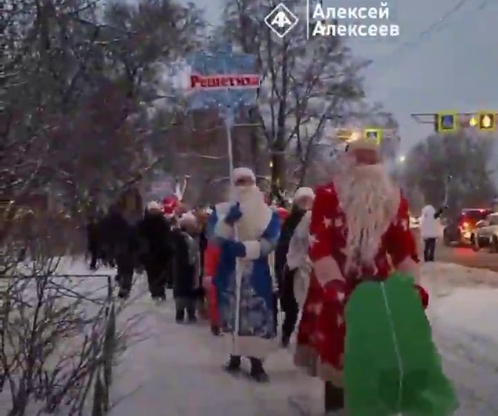 В поселке Решетиха Нижегородской области состоялся новогодний парад с участием Дедов Морозов, Снегурочек и сказочных героев.