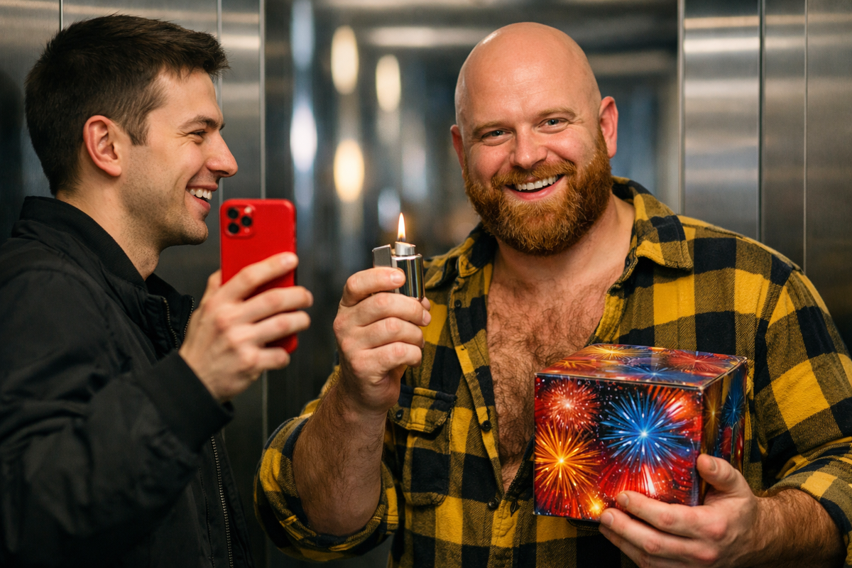 Телефон готов для съемки. Зажигалка щёлкает, фитиль вспыхивает. Кабина лифта — три квадратных метра замкнутого пространства — через секунду превращается в нечто среднее между преисподней и дискотекой. Только вместо музыки — треск петард, вместо света — вспышки, от которых хочется зажмуриться. А дым. Столько дыма, будто кто-то решил устроить сауну для особо отчаянных.