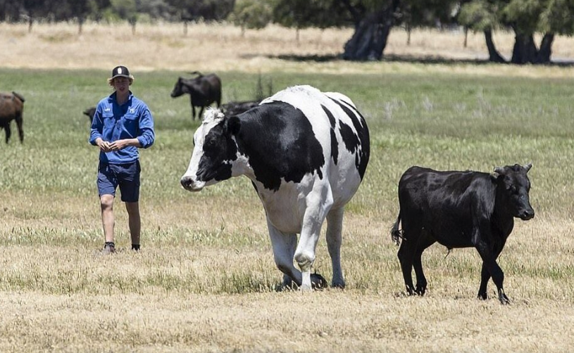 На одной из австралийских ферм пасётся необычное животное. Это бык по кличке Никерс, и его невозможно не заметить в стаде — буквально. Парень возвышается над своими сородичами, словно баскетболист среди школьников.