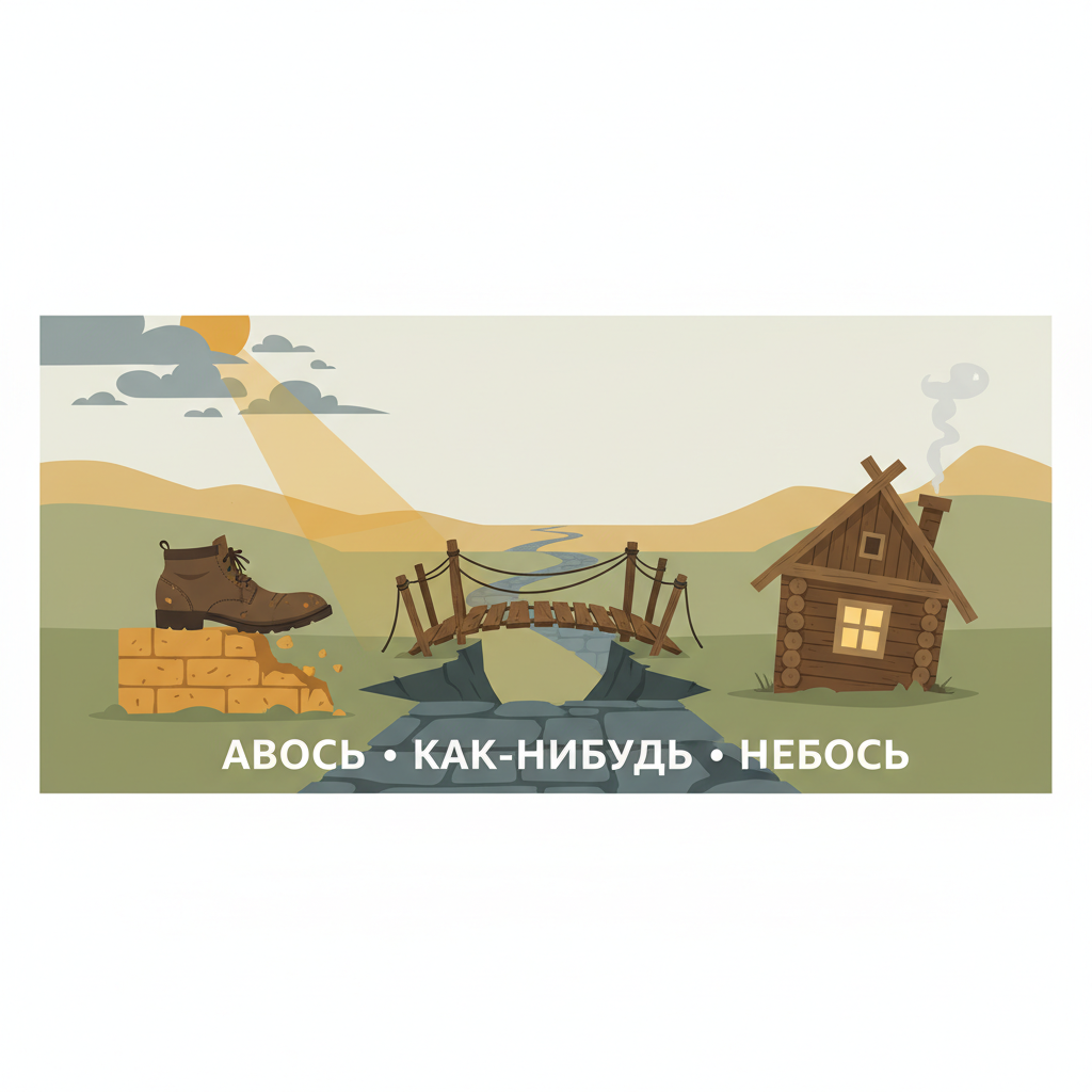 В каждом языке есть слова-ключи, которые открывают потайную дверь в менталитет нации. В русском языке эта дверь держится на трёх волшебных словах-скрепах: «авось», «как-нибудь» и «небось». Они кажутся простыми разговорными частицами, но на самом деле — это целые философские системы, стратегии выживания и мировоззрения в миниатюре. Почему их так сложно перевести, и есть ли им аналоги у других народов? Лингвистическое расследование о главных «костылях» русского сознания. Самое магическое и безответственное слово русской речи. Оно означает надежду на благоприятный случай без всяких на то оснований. «Авось» — это не просто «может быть». Это «может быть, вопреки всему, потому что иначе — никак». Это оптимизм отчаяния, ставка на чудо как рациональный выбор в иррациональных обстоятельствах. Если «авось» — это стратегия надежды, то «как-нибудь» — это стратегия действия. Оно означает выполнение задачи не идеально, не по плану, а с помощью импровизации, подручных средств и смекалки. «Как-нибуд