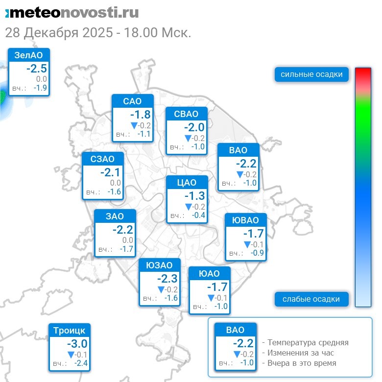 В 18:00 в Москве было от -3.2°C до -0.8°C, средняя температура -2°C #погода #Москва #зима #температура #28декабря #воскресенье