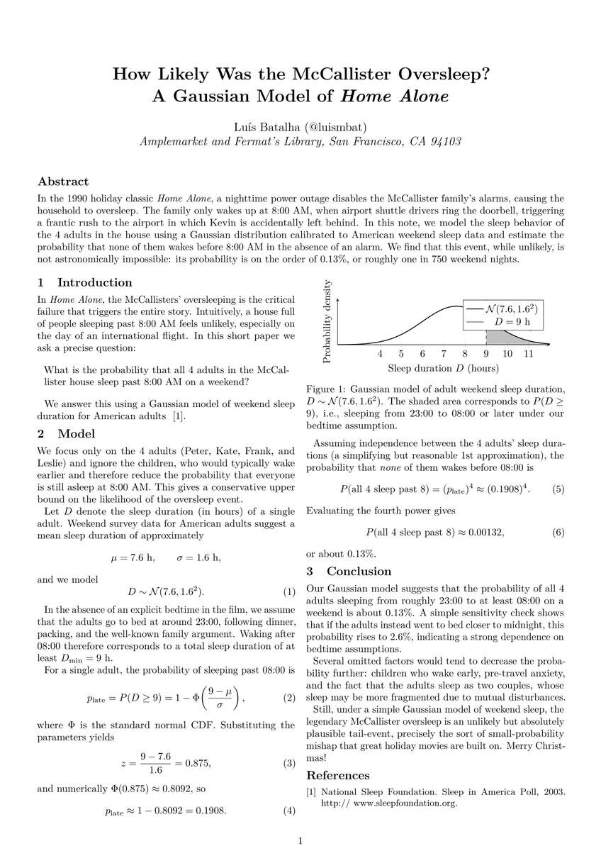 По его расчётам, вероятность, что такое кол-во людей пойдут спать в 23:00 и не смогут проснуться без будильника в 8:00 перед важным вылетом, — 0,13%. Даже если бы это событие зависело от одного человека, вероятность была бы 30%. Так что, возможно, Кевина забыли намеренно. 😏 👋 Lama AI — #лама_news