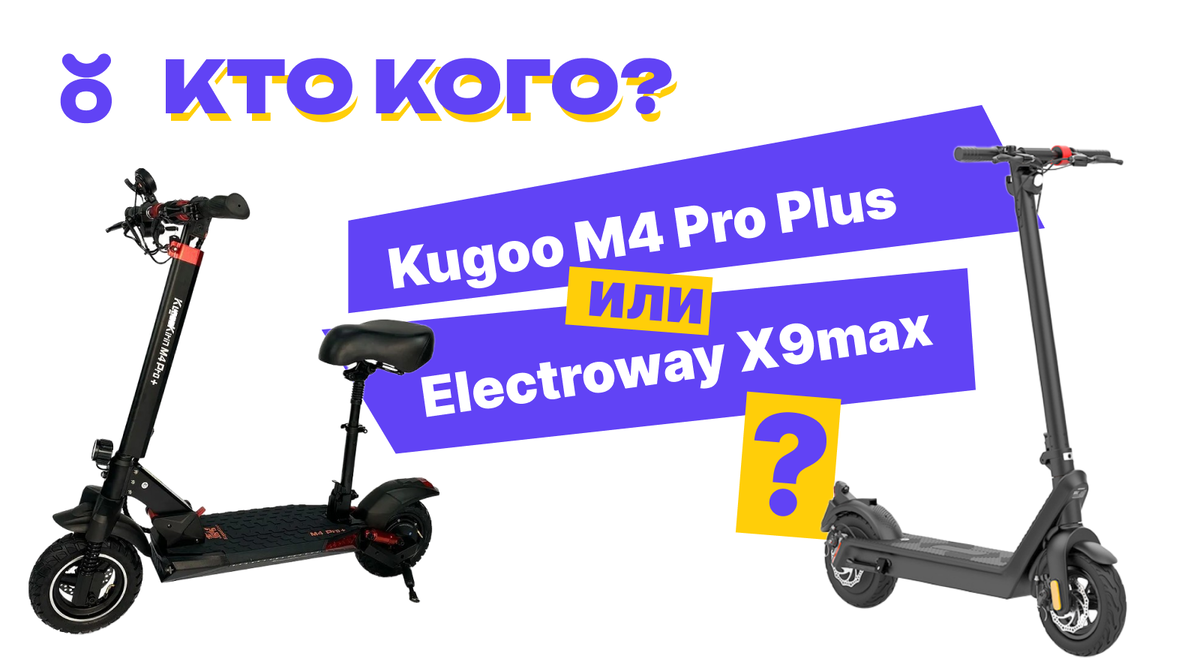 Здесь различие принципиальное. Kugoo M4 PRO Plus имеет двигатель 800 W (48V система), Electroway X9max — 500 W (36V система). На практике это означает, что Kugoo более чем в полтора раза мощнее и заметно быстрее разгоняется.
