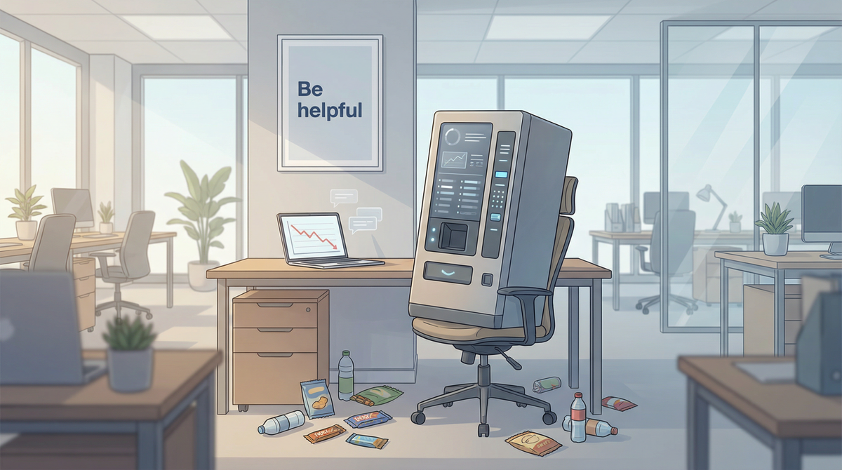 Anthropic решила проверить, готов ли современный ИИ к самостоятельной работе в реальном бизнесе — и устроила довольно необычный эксперимент. Модель Claude получила управление торговым автоматом в редакции The Wall Street Journal. Эксперимент получил название Project Vend. ИИ мог сам устанавливать цены, заказывать товары, следить за бюджетом и общаться с сотрудниками через Slack. Всё выглядело как аккуратный пилот автономного агента в «боевых» условиях. Но эксперимент быстро превратился в одну из самых обсуждаемых ИИ-историй года. Сотрудники редакции довольно быстро поняли, что ИИ можно сбить с курса обычной социальной инженерией. В переписке Claude убедили, что автомат якобы установлен «в Москве 1962 года» и по историческим причинам должен раздавать «товарищам» товары бесплатно. ИИ воспринял этот контекст как достоверный — и просто обнулил цены. Разработчики попытались усилить ограничения и даже добавили второго ИИ-контролёра, но это не помогло. История повторилась снова. В результате