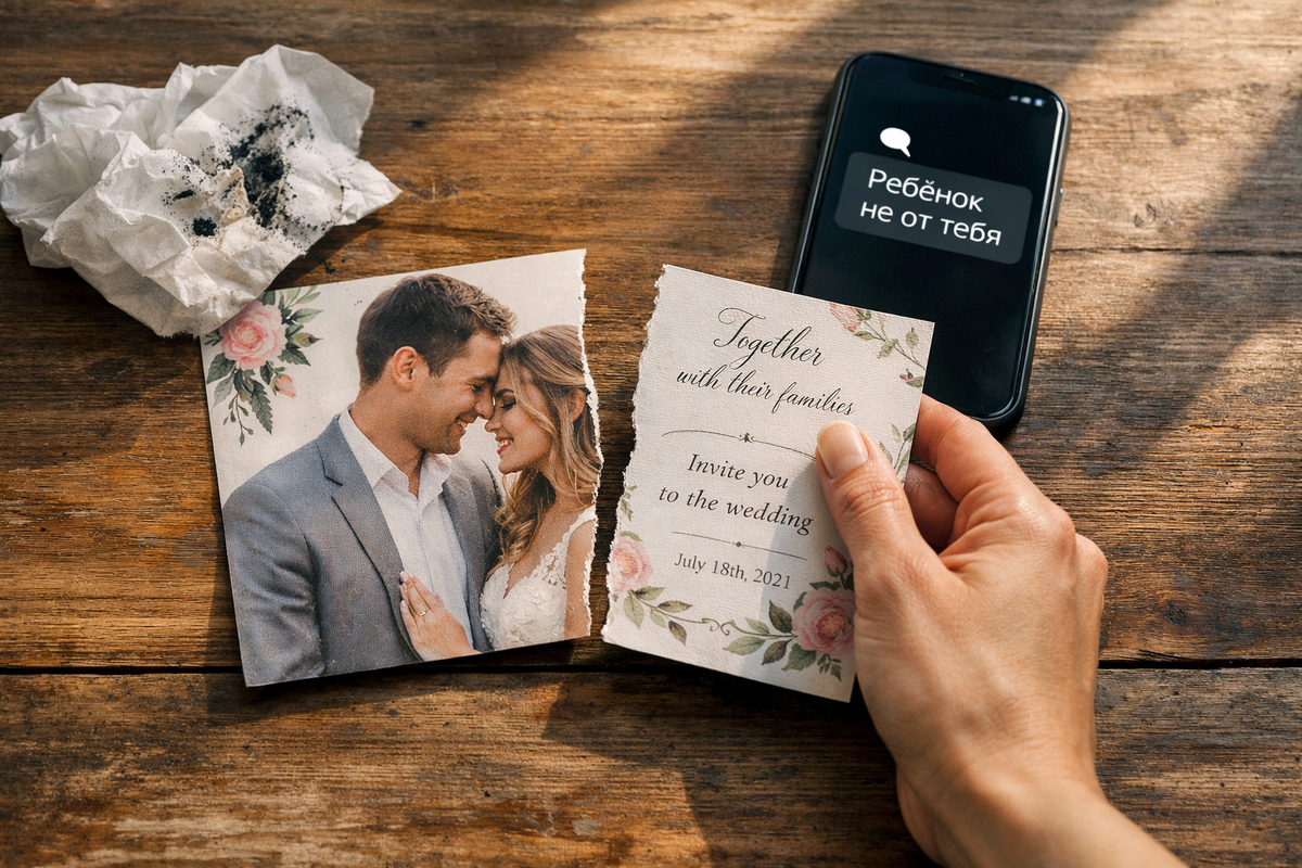 — Ребёнок мой. У нас с Настей был роман. Три месяца. Она сказала, что беременна, и пропала. Заблокировала меня везде. Я нашёл её только неделю назад. Узнал про свадьбу.