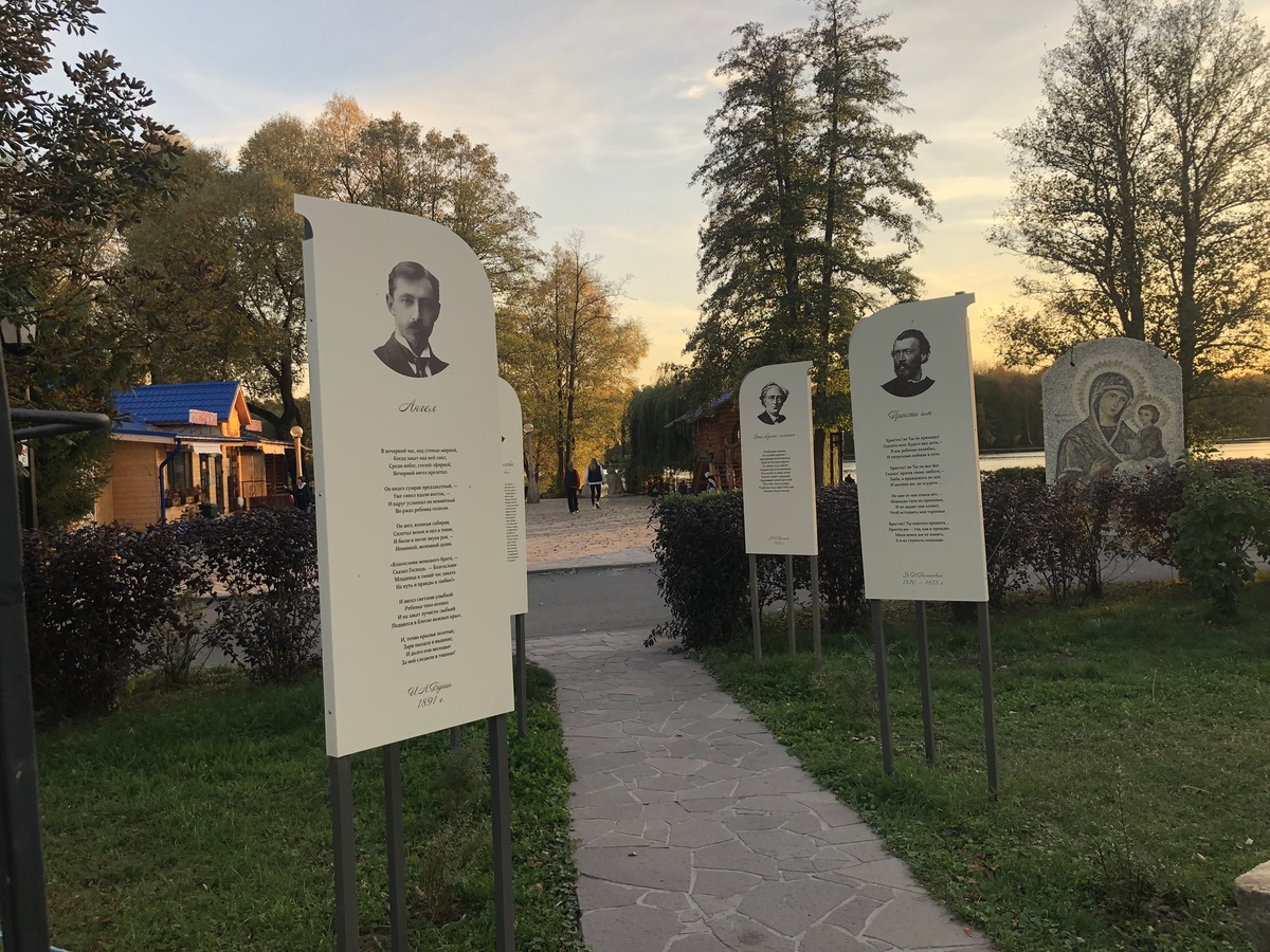 Раифский монастырь, что близ Казани, не перестает удивлять своими новыми пространствами. При этом он сохраняет традиционность и сдержанность, свойственную таким местам. Не так давно писала о философской тропе, появившейся здесь в 2021 году. В конце статьи дам ссылку на эту публикацию. Сегодня расскажу о поэтическом сквере. Создали его год назад - в 2024 году ко дню престольного праздника монастыря - Грузинской иконы Божией матери. Расположился сквер у входа в монастырь, рядом с фонтаном. Думаю, вы хорошо знаете этот сквер со скульптурами церковных сподвижников. От фонтана лучиками расходятся аллеи. Вдоль них стоят стенды со строчками поэтов России и фотографиями авторов. Стенды - скромные, в спокойных тонах, хорошо сочетаются с атмосферой Раифского монастыря. Авторы строк - разные: от известных до малознакомых, от живших давно до наших современников. Но их произведения объединяет одно: философские идеи, поиски смысла жизни, божий промысел. Особое место здесь занимают поэты 20 века.