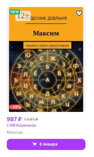 Книга-имя "Максим" появилась на WB. Ждем Светлану ;))) https://www.wildberries.ru/catalog/731594618/detail.aspx?targetUrl=SN